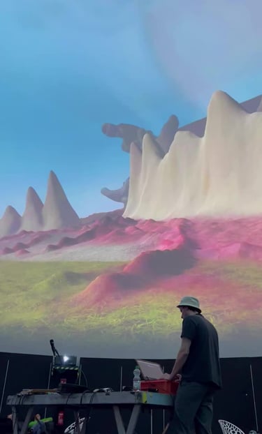 Soundscapes and experimental rhythms with live visuals on the 360° projection at b-dome, a unique 360° projection dome Organized by Soundgazing.