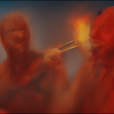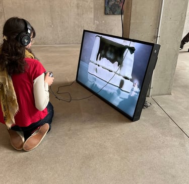 The Desert Journey: The video features distorted, blurry figures, ghosts, and "jinns" moving through a desert landscape. This is accompanied by an oriental AI-generated melody that I composed to bridge the gap between traditional storytelling and algorithmic sound.